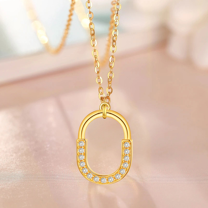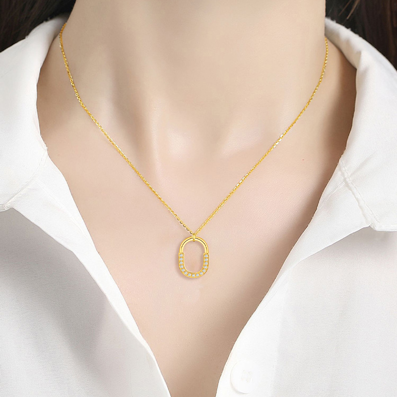 Product information:Color: U-shaped necklacePendant material: 925 silverChain style: cross chainMaterial: SilverPopular elements: EllipseApplicable people: womenStyle: net red wind