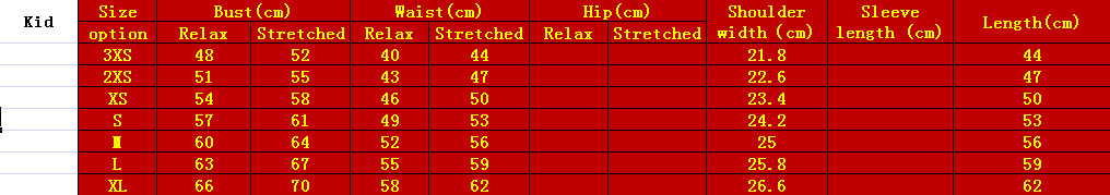 Size: S,M,L,XL,XXL,XXXL,3XS(1) children, 2XS(2-3) children, XS(4-5) children, S(6-7) children, M(8-9) children, L(10-11) children, XL(12-13) children