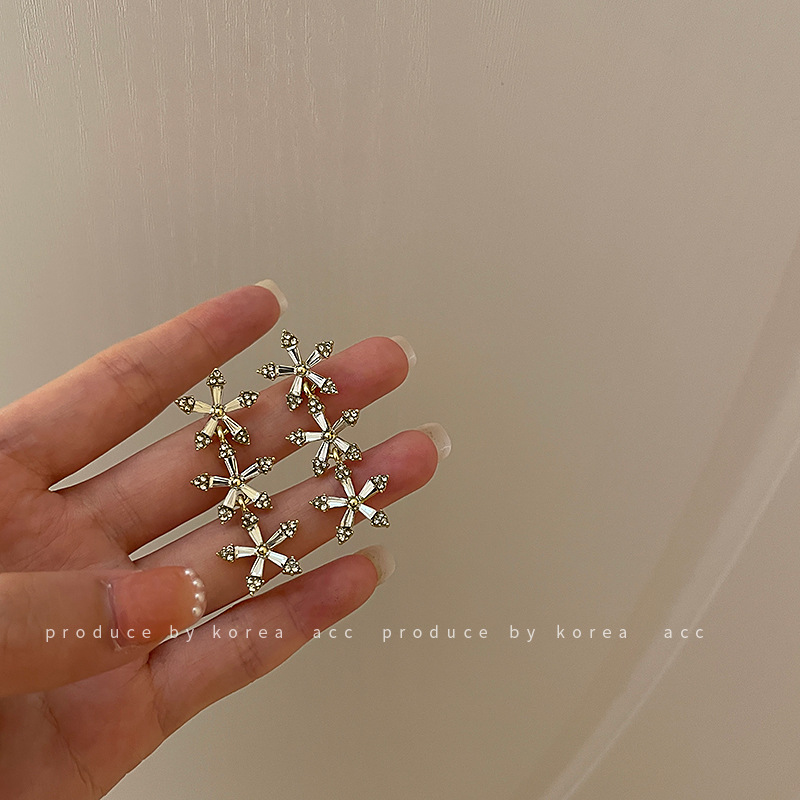 Product information:Material: AlloyStyle: Korean style/Korean styleStyle: Women'sStyle: FlowersProcessing technology: diamondColor: Silver Needle. goldPackage:Gold-plated earrings X1