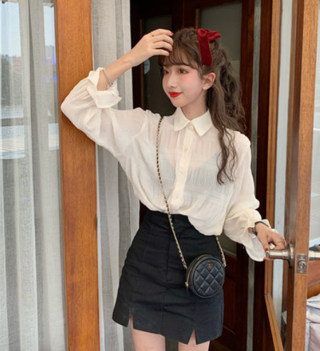 Two piece chiffon shirt for lady waistcoat