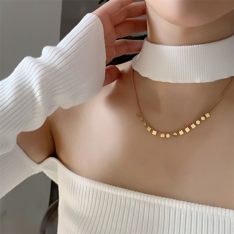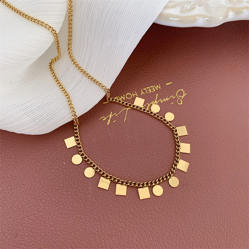 Product information:Color: Gold Pendant material: titanium steel Chain style: cross chain Material: Stainless steel Popular elements: quadrilateral Style: sweet and cool Product Size: necklace 40cm extension chain 6cm