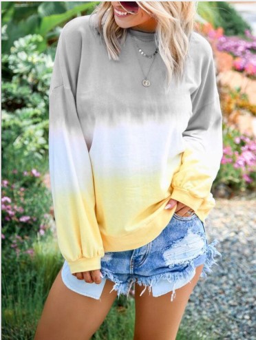 Rainbow gradient sweatshirt autumn and winter Europe and the United States hot sale long-sleeved shirt women   undefined