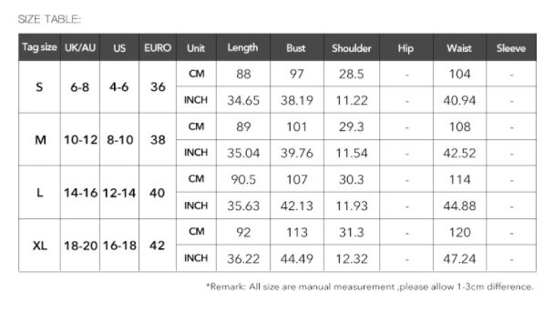 Note:1. Asian sizes are 1 to 2 sizes smaller than European and American people. Choose the larger size if your size between two sizes. Please allow 2-3cm differences due to manual measurement. 2. Please check the size chart carefully before you buy the item, if you don't know how to choose size, please contact our customer service. 3.As you know, the different computers display colors differently, the color of the actual item may vary slightly from the following images.