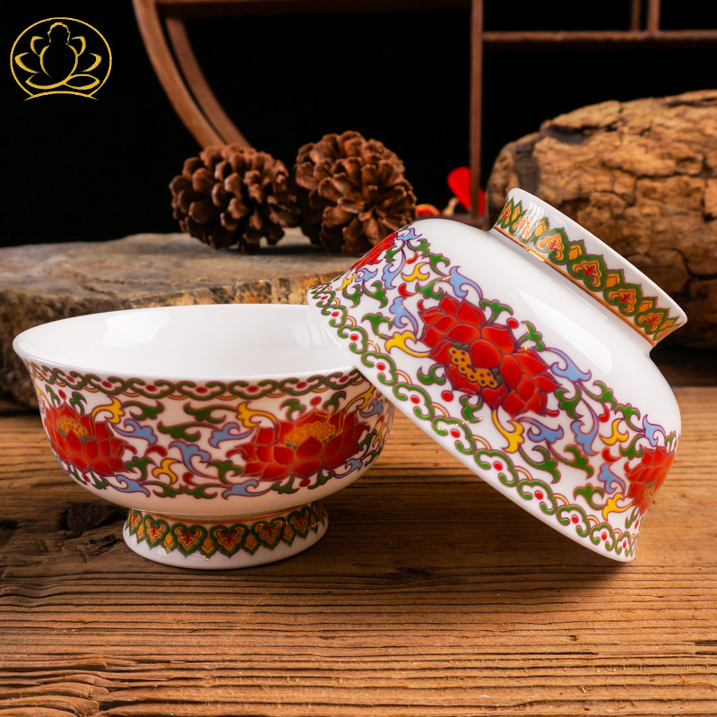 Ceramic Eight Treasure Buddhist Rice Bowl