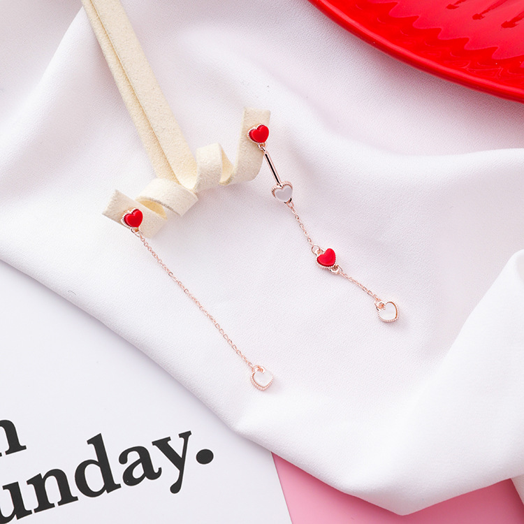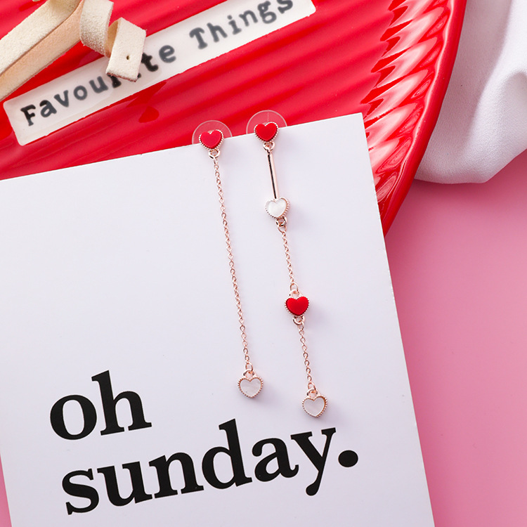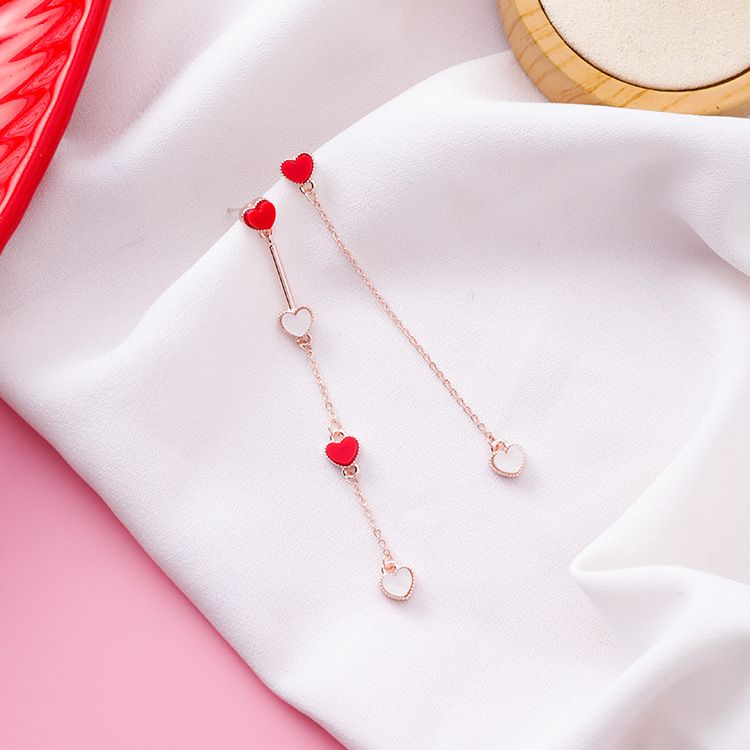 Acrylic love chain asymmetric earrings personality tassel earrings heart-shaped long earrings
