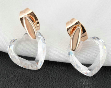 Color: Rose Gold / PlatinumSize: main stone 10mmMaterial: copper inlaid zirconProcess: Zircon Wax Inlay Gold Platinum Hand PolishedStyle: simple and transparent love earrings