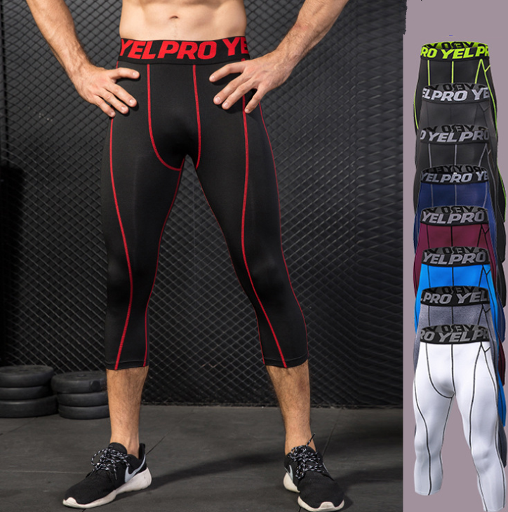 Men's PRO Cropped Pants Fitness Running Training Tights AliExpress Fast Drying Stretch 7 Pants