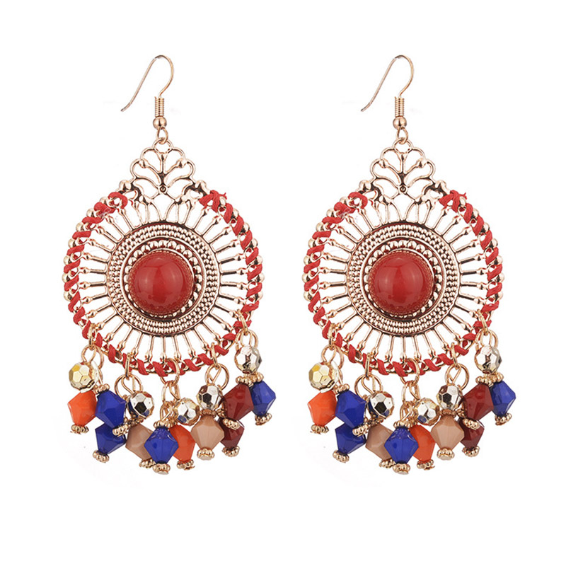 Exaggerated Disc Tassel Earrings Retro Style