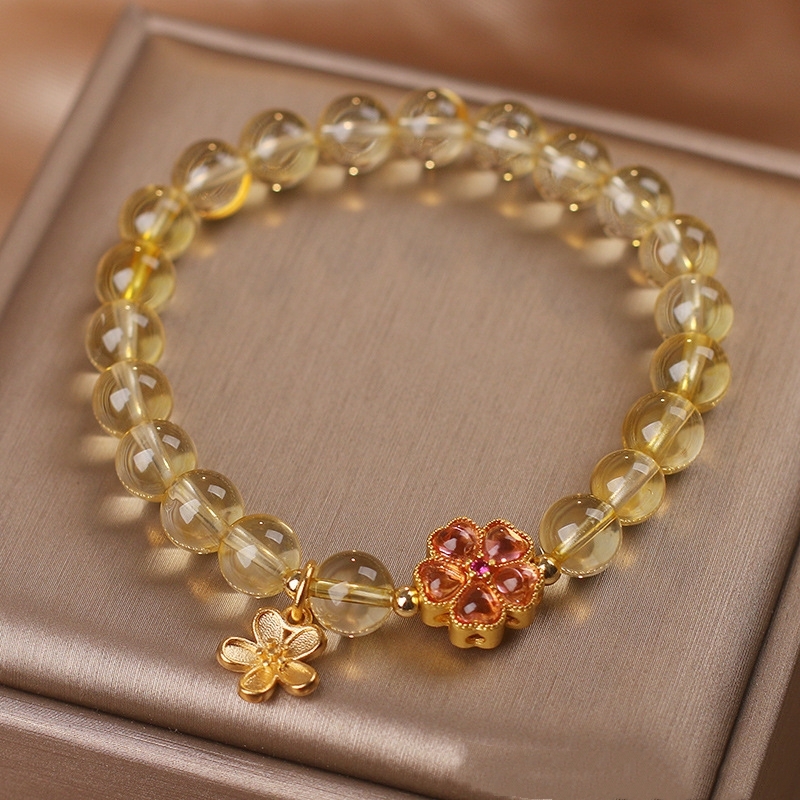 Women's Natural Citrine Fresh Flower Pendant Bracelet