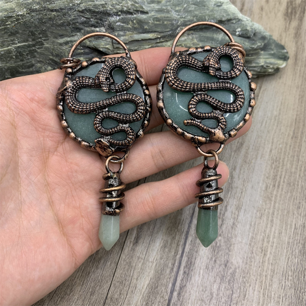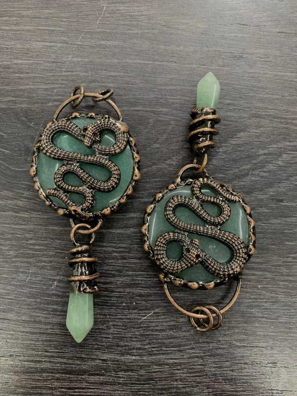 Style: Europe and AmericaMaterial: CrystalColor: Green Aventurine Snake Pendant