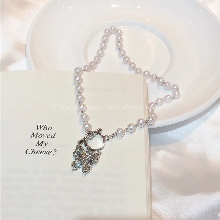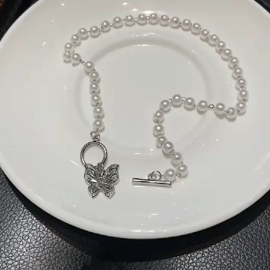 Necklace Size: about 36.5cm in length. Butterfly pendant size: 1.5cm*1.8cm. 1 in =2.54 cm 1 cm =0.394 in * Note: There is a slight deviation in manual measurement, please refer to the actual product. Material: Copper alloy, rhinestones, shell beads.