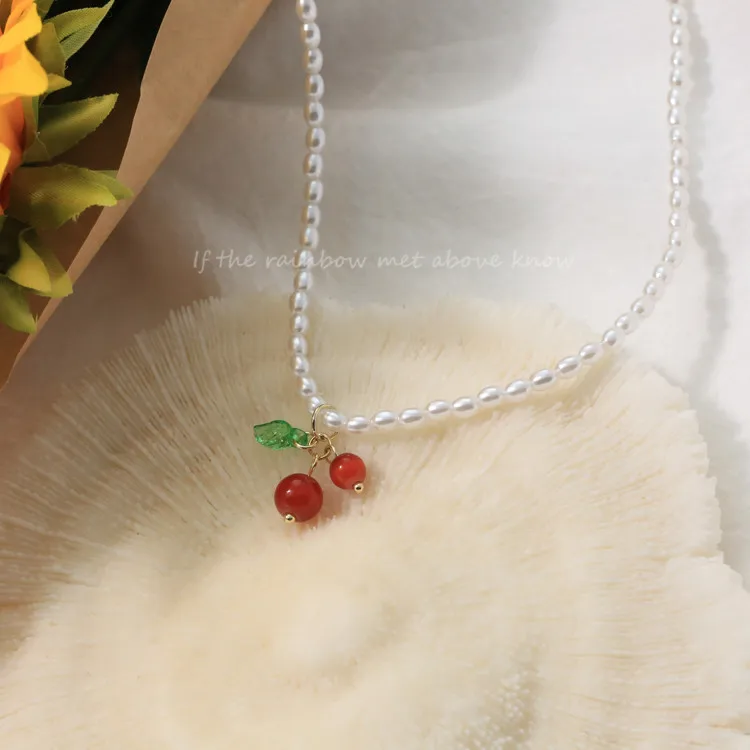 Cherry Pendant Freshwater Pearl Necklace