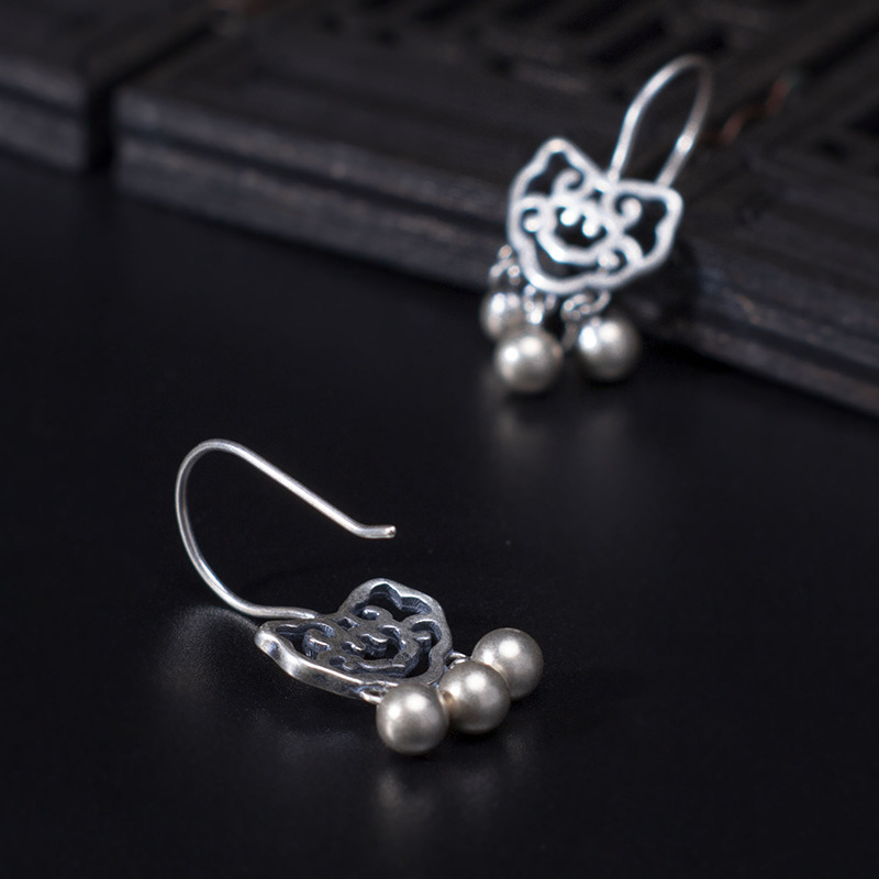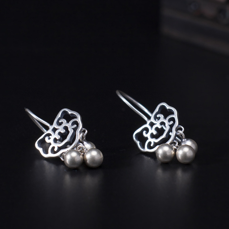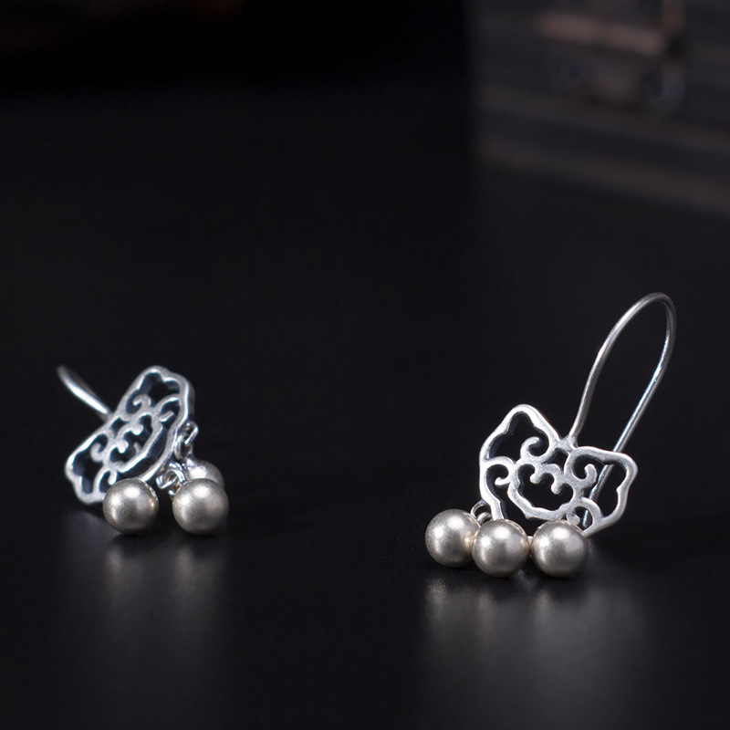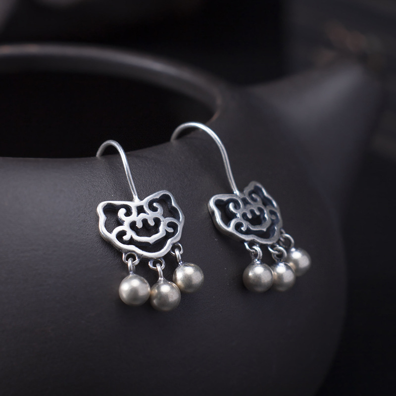 Product Information:Name: Auspicious Long Life Lock EarringsStyle: Women'sModeling: GeometryInlay material: not inlayMaterial: S925 silverSize: Earring size month 25*12mmBall about 4mmWeight: 2.5g (plus and minus error 0.3g)
