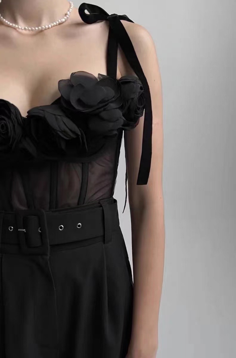 Product Details:Style: suspendersPattern: plainPopular elements: tie flowersColour: BlackMain fabric content: 30% and belowSize Information:Size: XS, S, M