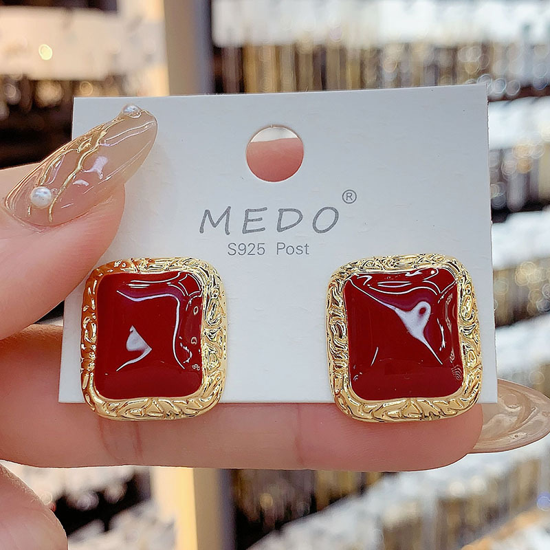 Color: beige drip glaze Square (14k real gold plating), red drip glaze Square (14k real gold plating)