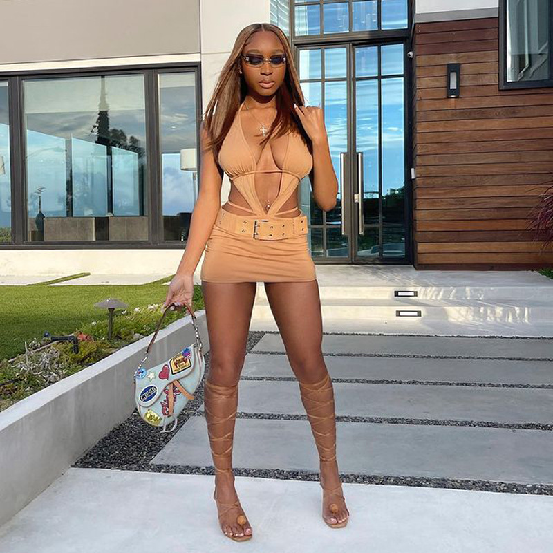 Popular elements: hollow, irregular, backless, stitching, navel, tie/belt