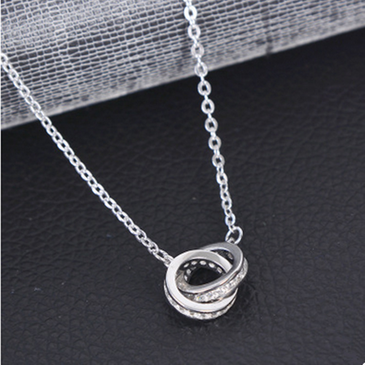项链女日韩版双环玫瑰金锁骨链短款简约彩金正品森系学生