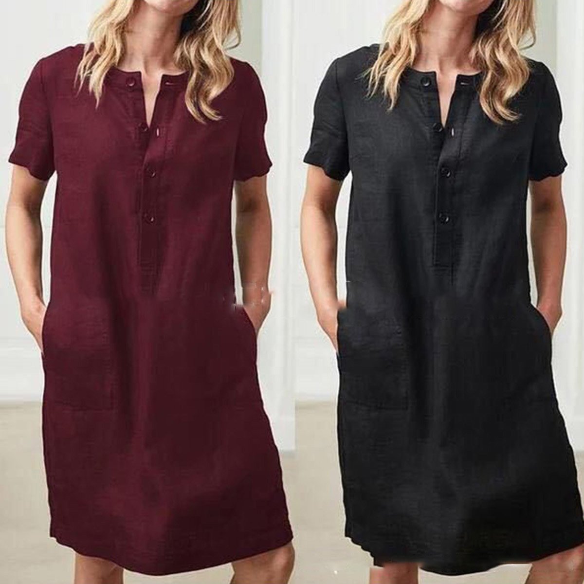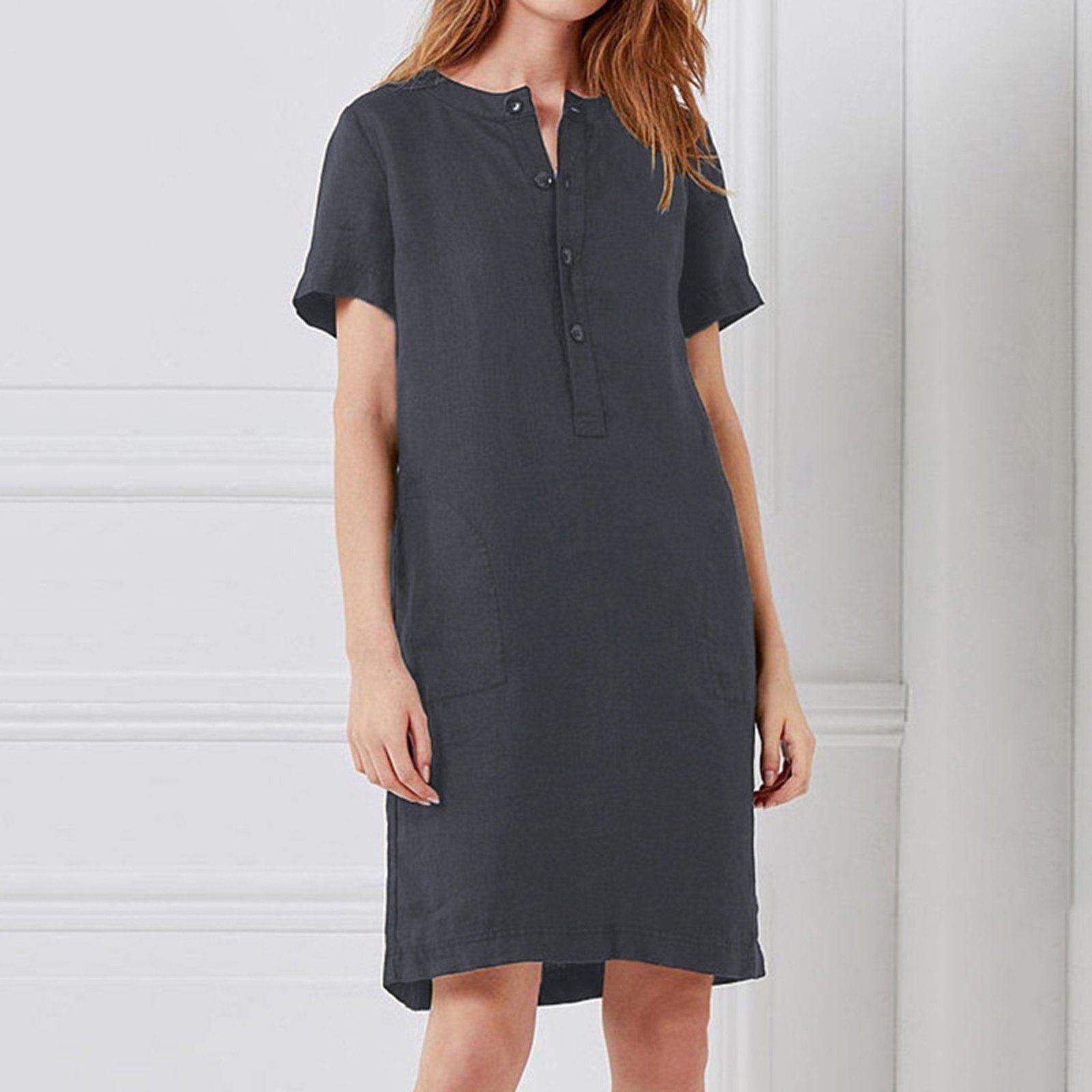 Cotton and linen loose short-sleeved mid-length female dress