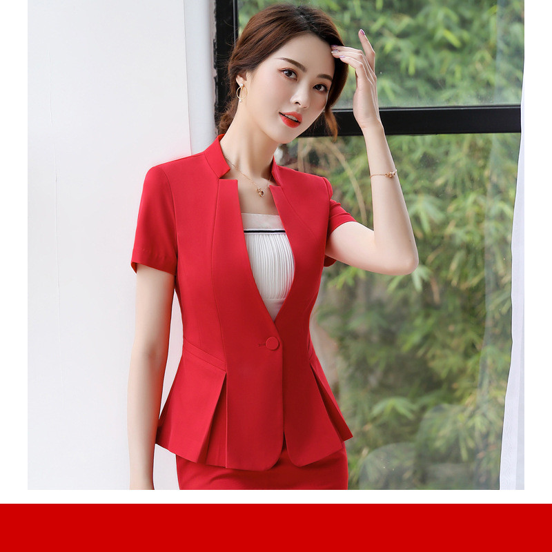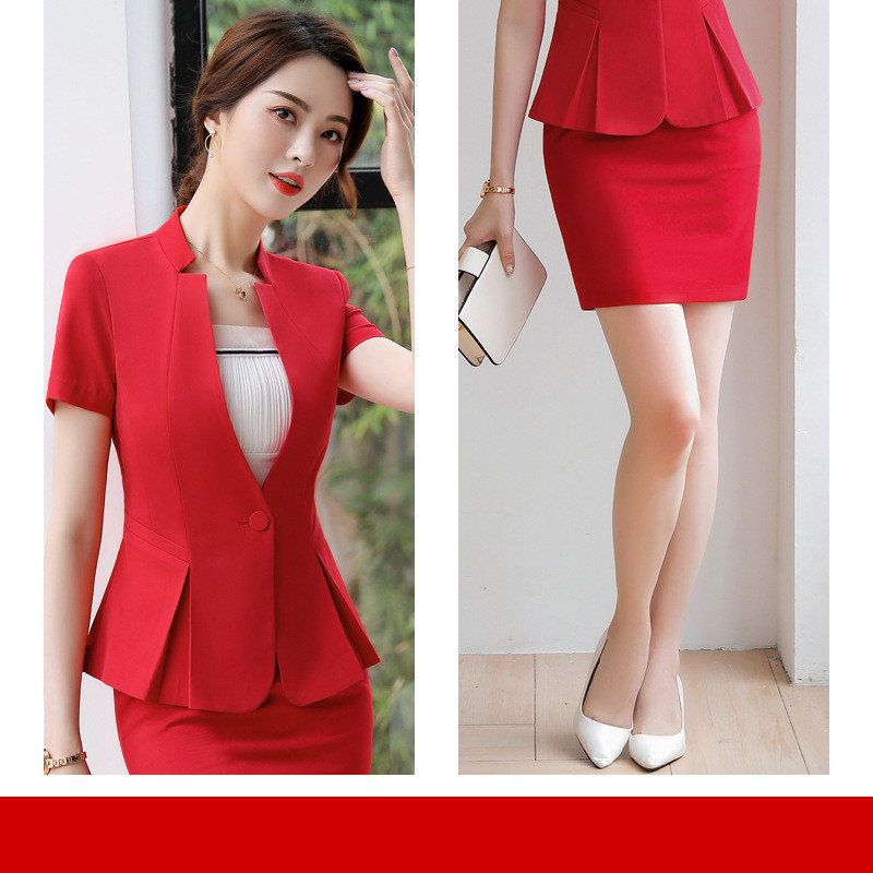 Color: black suit, red suit, dark blue suit, black suit + short skirt, black suit + trousers, red suit + short skirt, dark blue suit + short skirt, dark blue suit + trousers