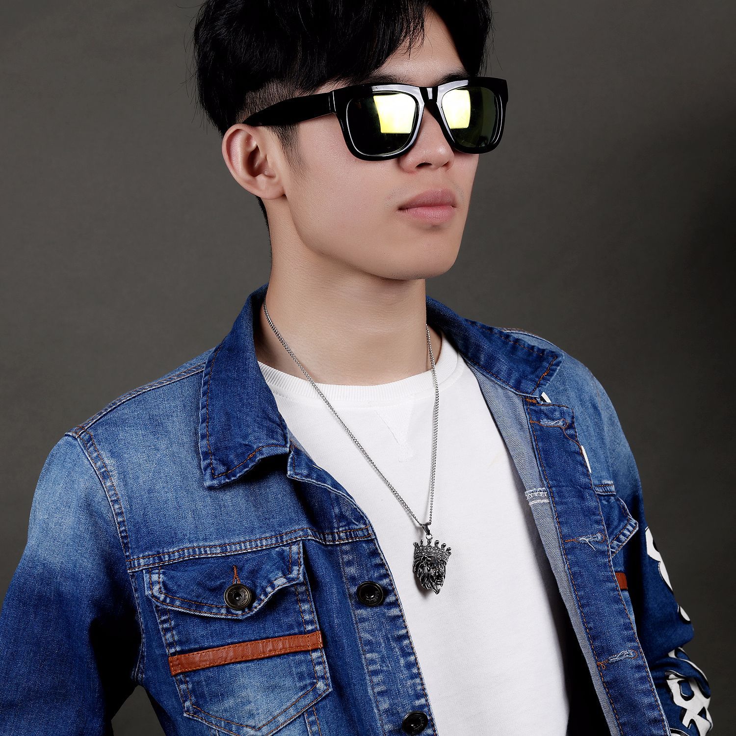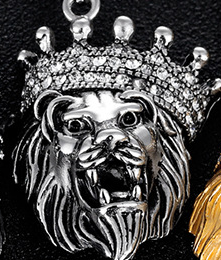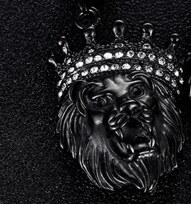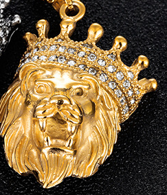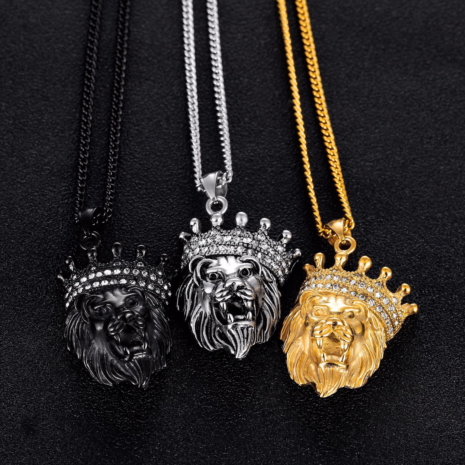 Hip Hop Trendy Men's Necklace With Diamonds for Men, Crown Lion Head Titanium Steel Pendant