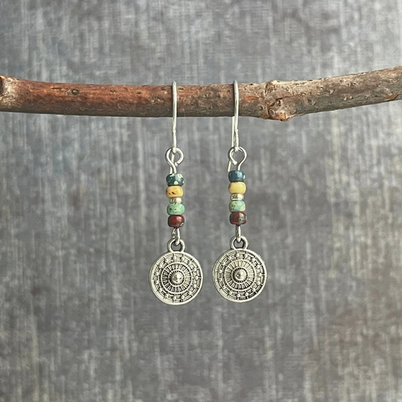 Bohemian Round Beaded Pendant Earrings Vintage