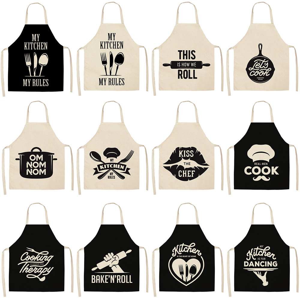 Product category: ApronApron classification: sleeveless apronPurpose: AntifoulingMaterial: PolyesterStyle: modern and simpleDesign and color: black and whitePattern: as shown Specification: 68x55,47x38