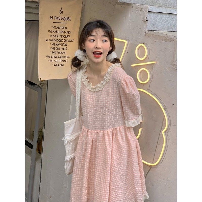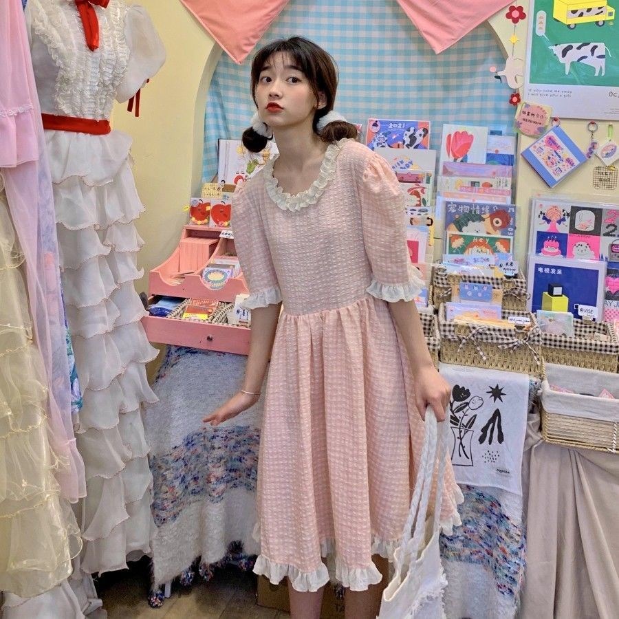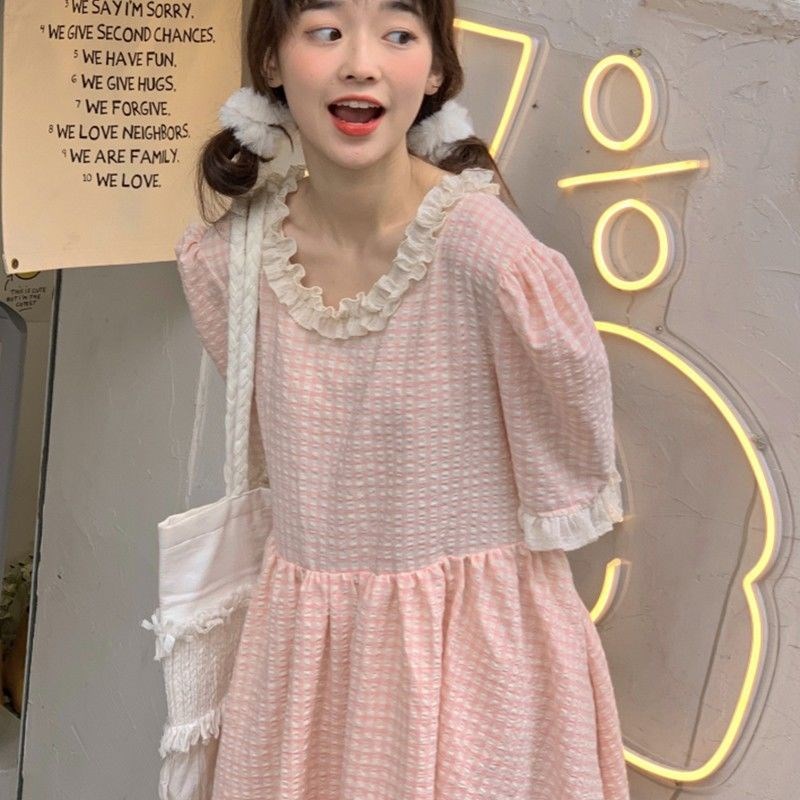 Color: pink check dress