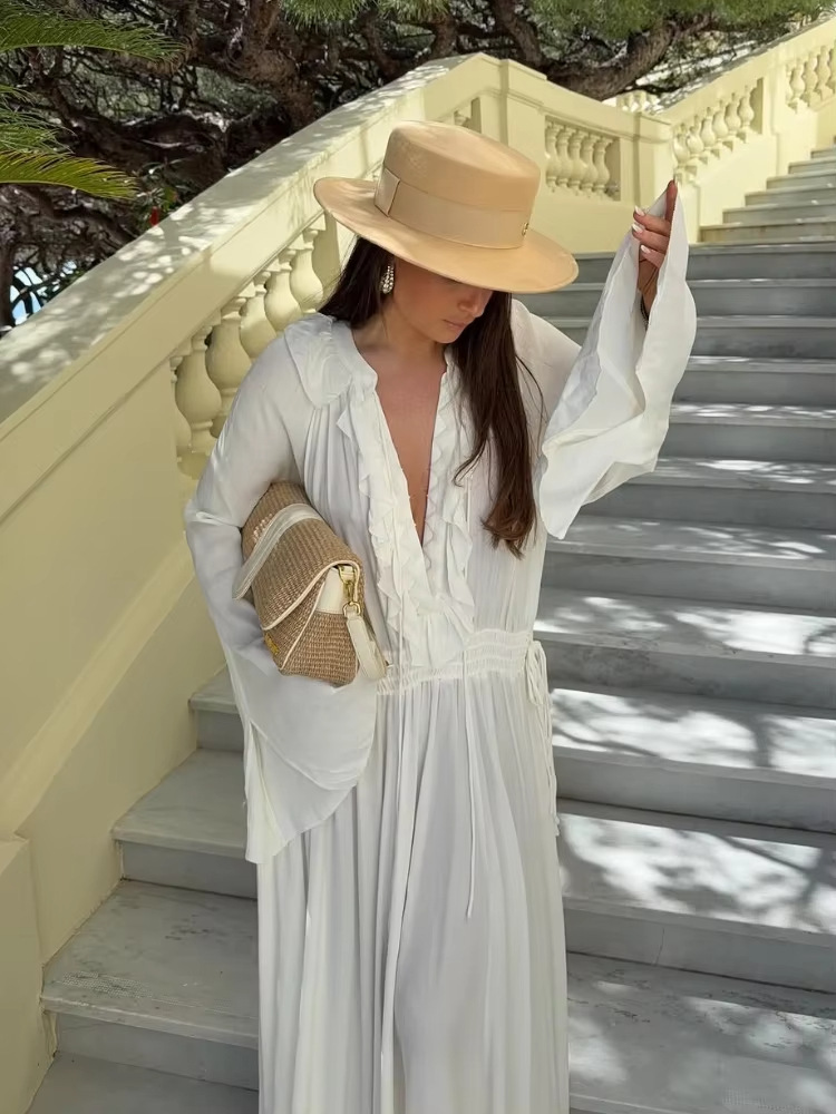 Product information: Skirt type: fairy dress Color: White Waist Type: Mid waist Size: S,M,L Main fabric composition: Polyester Sleeve length: long sleeve Skirt Category: Dress