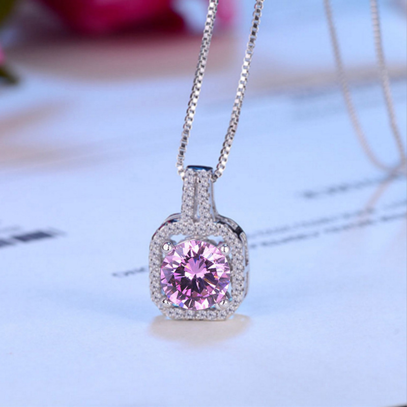Color: white diamond single pendant, pink diamond single pendant, purple diamond single pendant, red diamond single pendant, blue diamond single pendant, champagne diamond