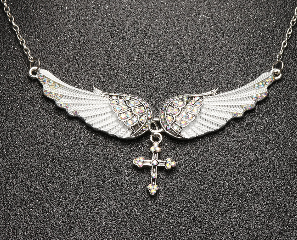 Angel Wings Wings Pendant Necklace Cross Long Sweater Chain
