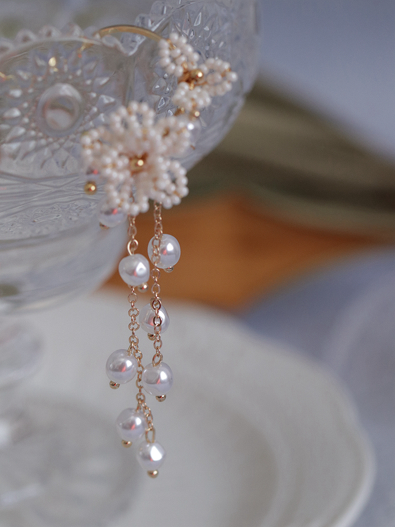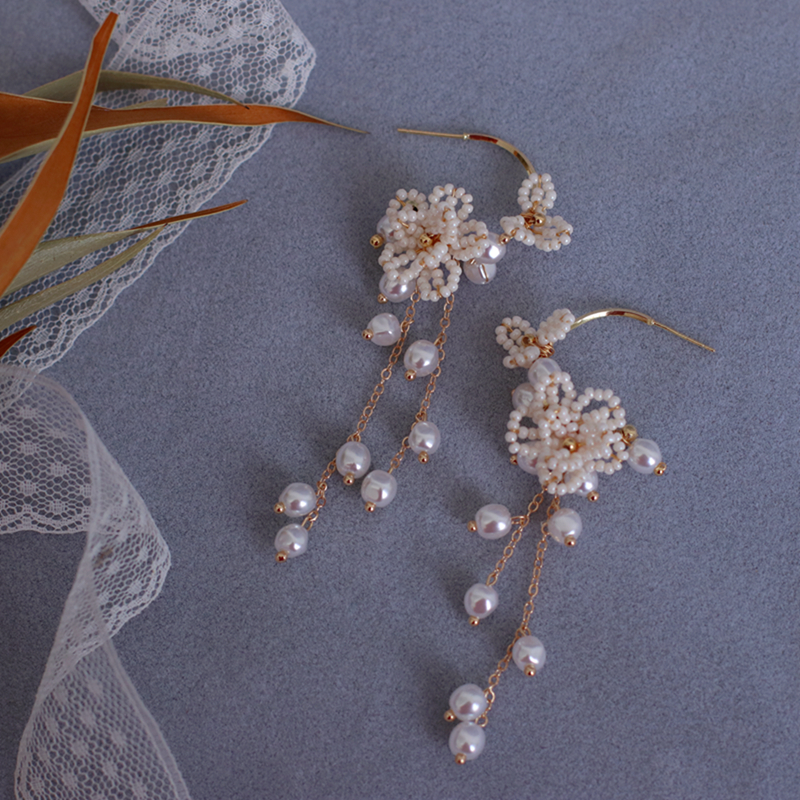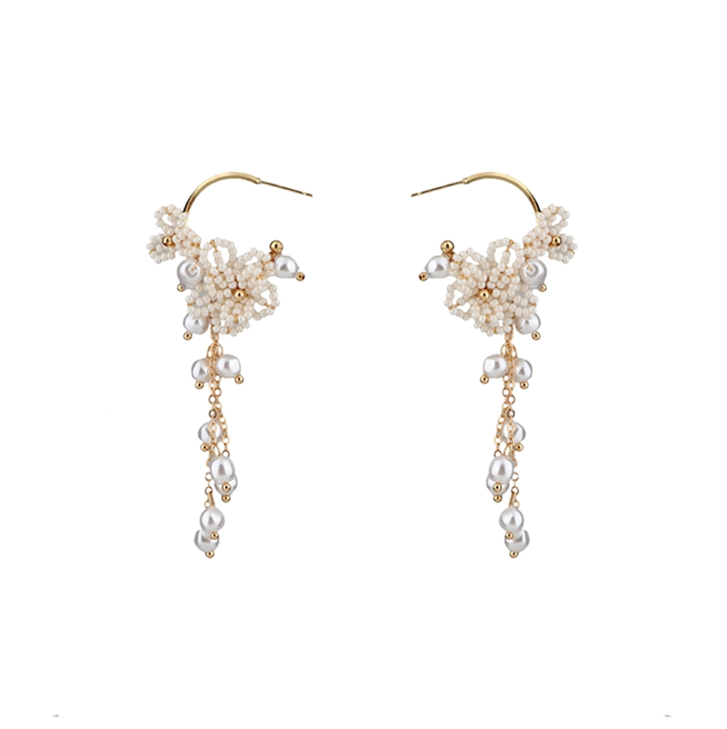 Product Information:Material: Rice beads/Copper plated/Shell beadsPattern: Plant flowersApplicable gender: femaleSize: 3.3 * 8cmPackaging list:Earrings * 1 pair