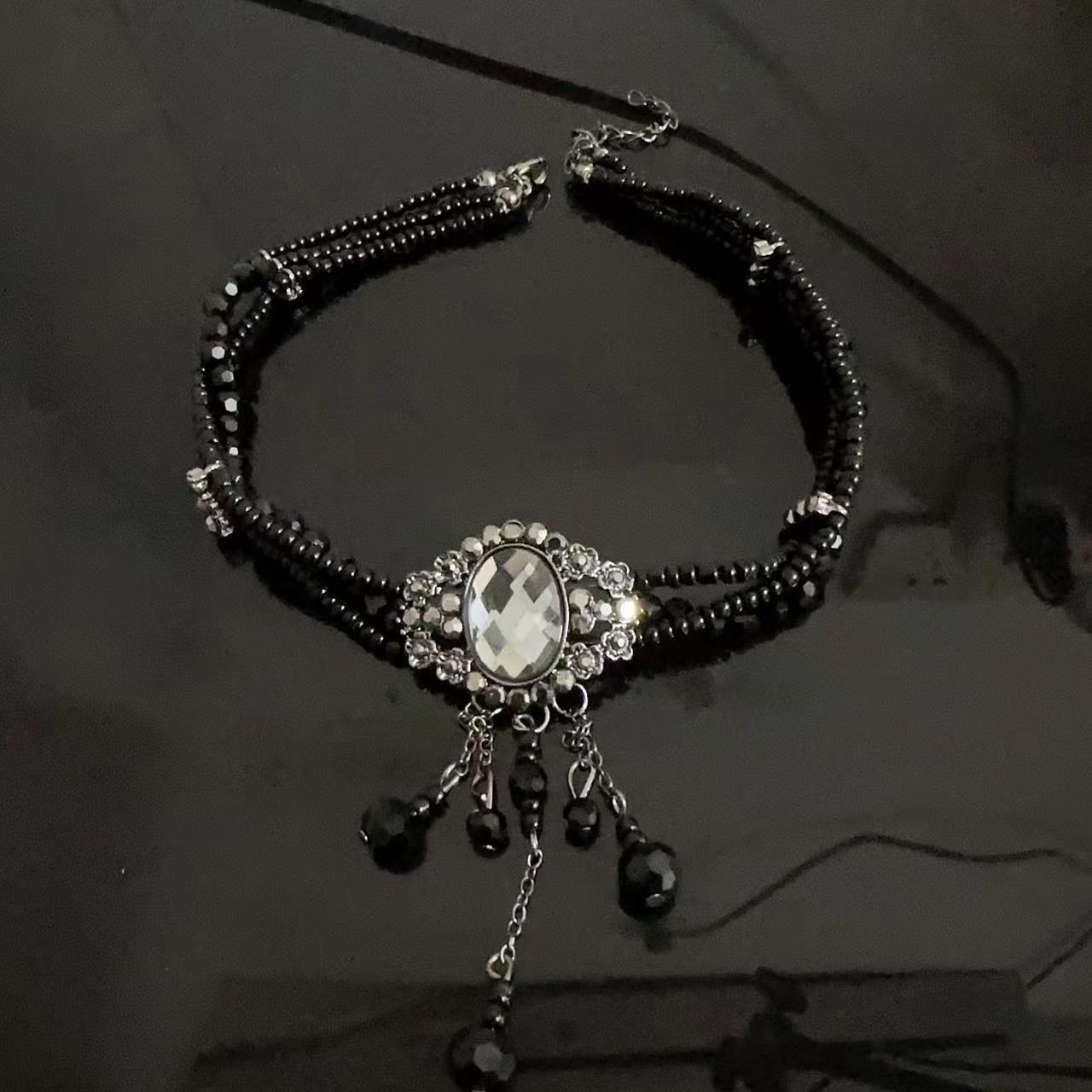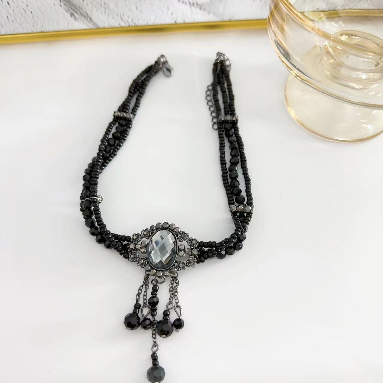 Product information:Color: As main imagePendant material: Mixed gem inlaidChain style: Ball bead chainMaterial: Artificial crystalShape: GeometricPopular elements: RoundStyle: Palace style