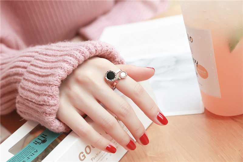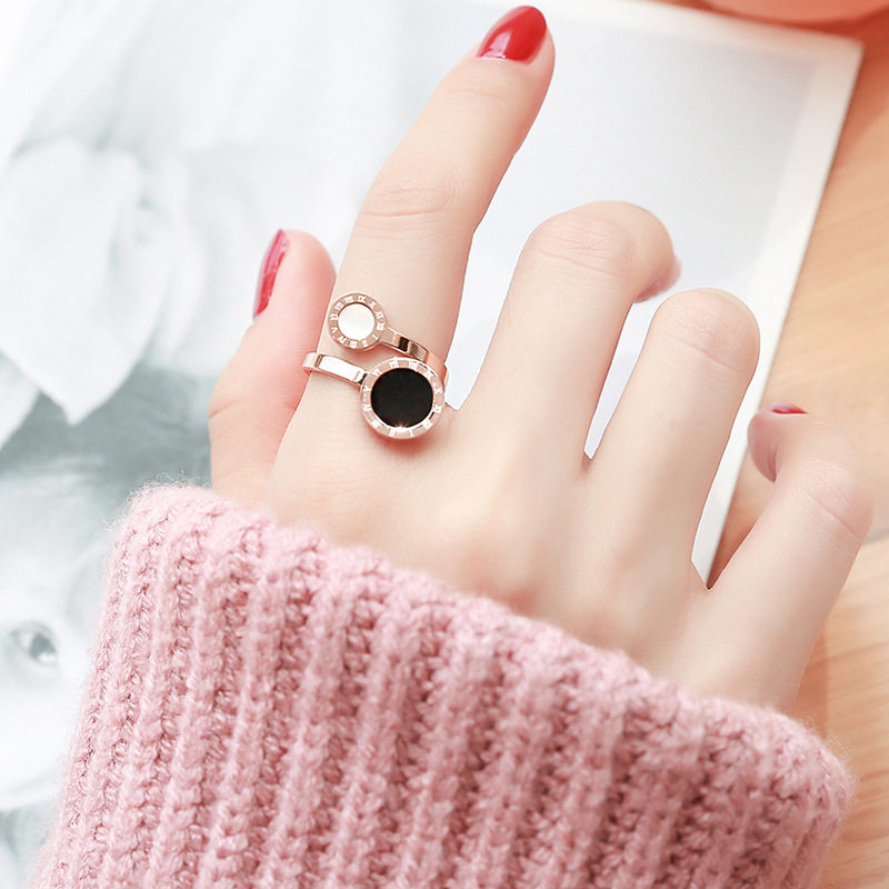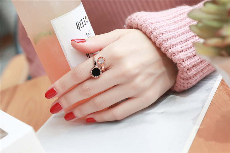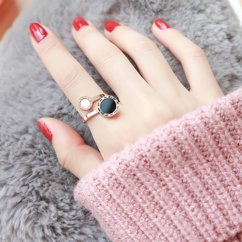 Size Black And White Shell Roman Female Ring Korean Version Of Titanium Steel Color Gold Plated Ring