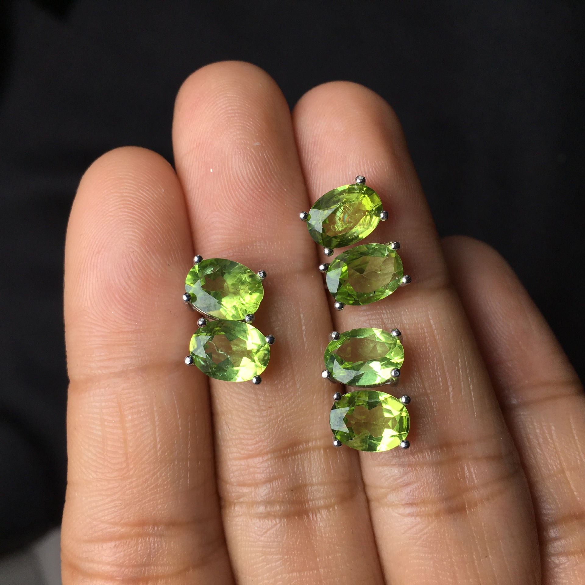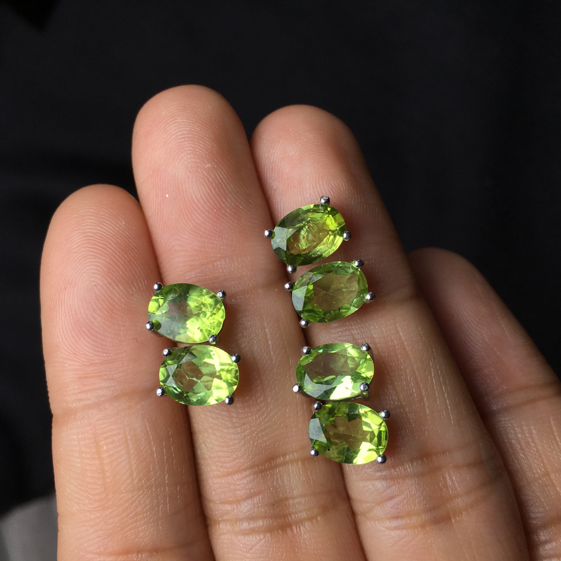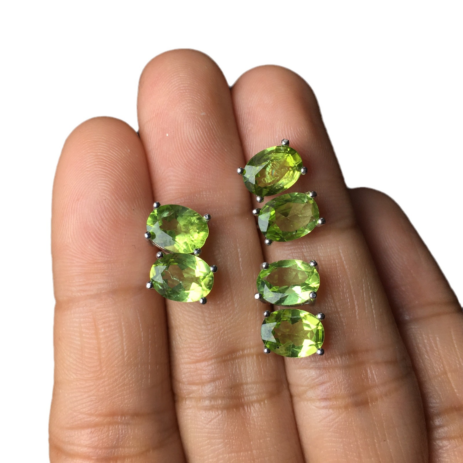 Product information:Color: Grass Green Applicable population: Female Material: Olivine Purity: pure natural Shape: Geometry Popular elements: Ellipse Stone specification: 6 × 8mm