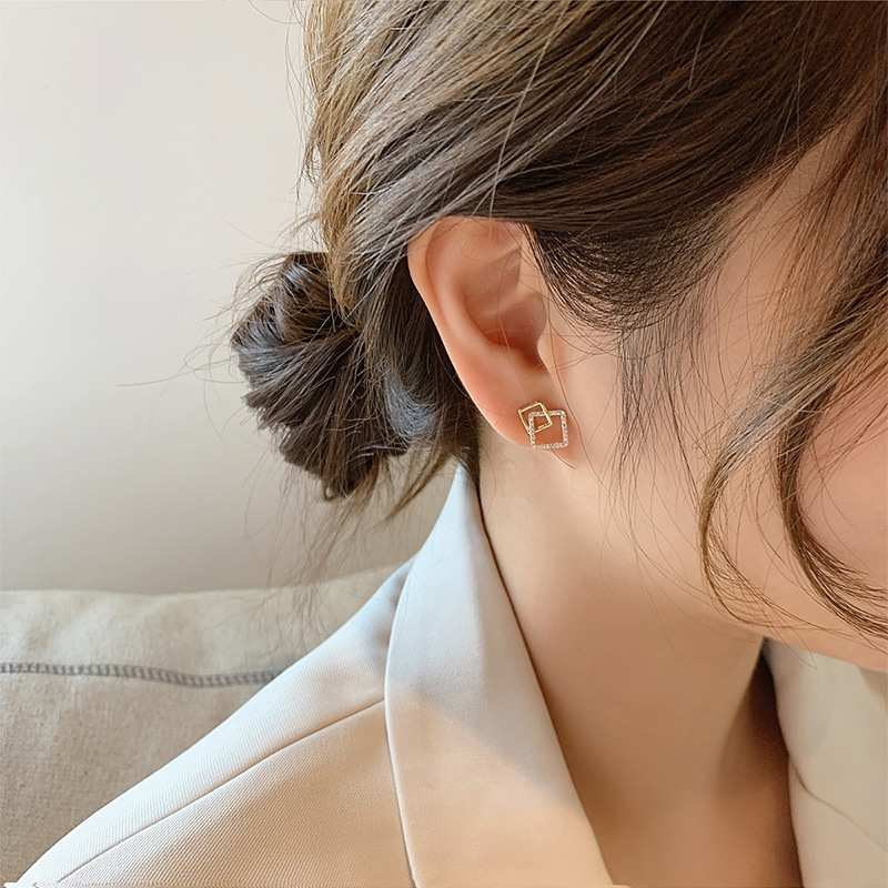 Type: EarringsStyle :womenShape :geometryOccasions for gifts:Weddings, travel souvenirs, employee benefitsMosaic material :alloy inlaid artificial gem/semi-precious stoneColor :Silver Needle. Golden