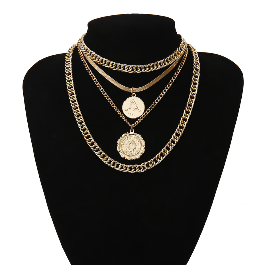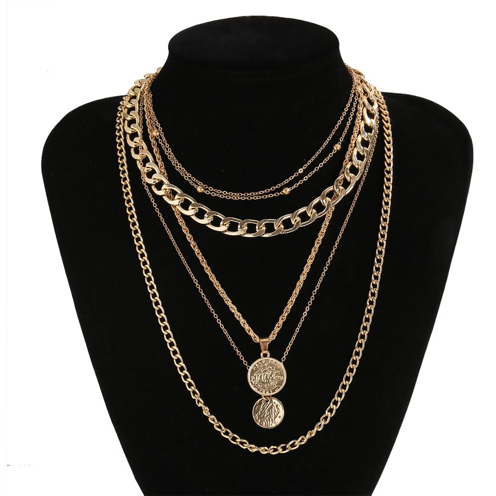 Style: SimpleMaterial: AlloyTreatment process: electroplatingType: NecklaceStyle: Women'sStyle: Multi-layer disc pendantPackaging: Individually packedChain style: water wave chainExtension chain: 10cm or lessPendant material: alloy