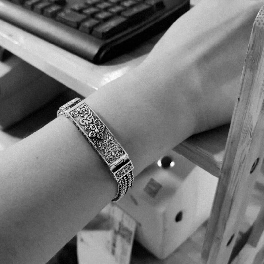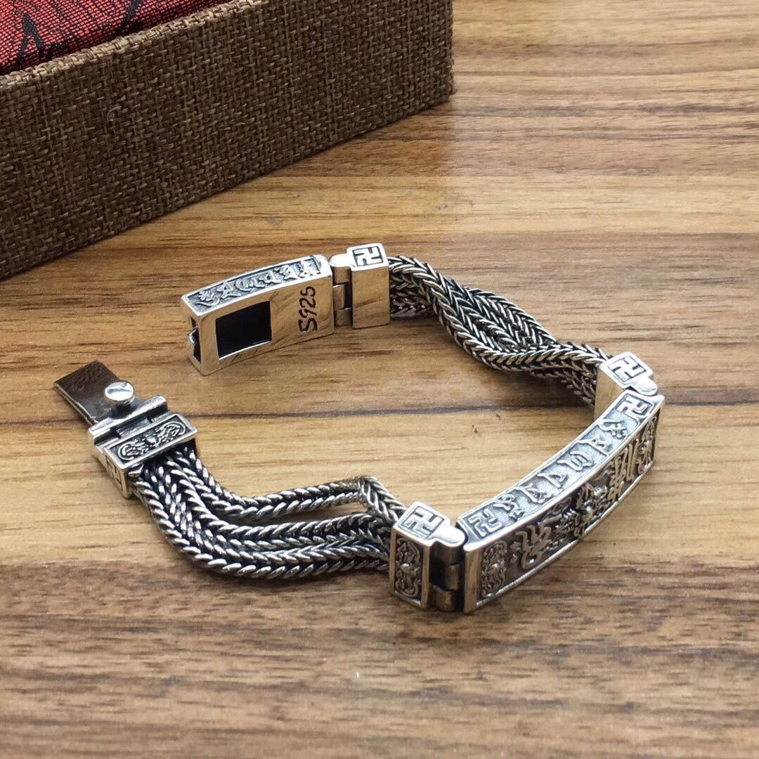 Material: SilverType: BraceletStyle: Men'sShape: geometricPopular elements: retro, old, national tide