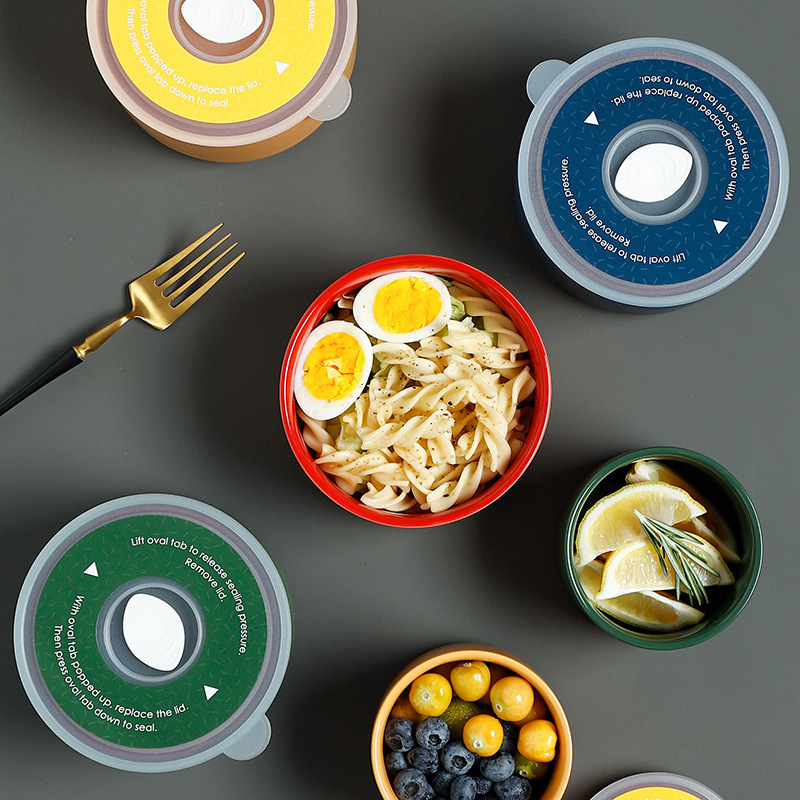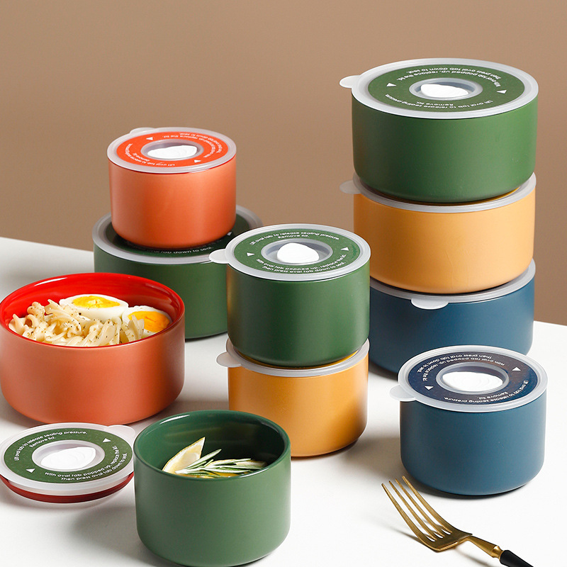Specification:Name: Color Porcelain Fresh-keeping BowlMaterial: CeramicShape: RoundWhether to keep warm: NoMicrowave oven: AvailableApplicable people: ChildrenProcess: High temperature color glazePacking list: Fresh-keeping bowl x1