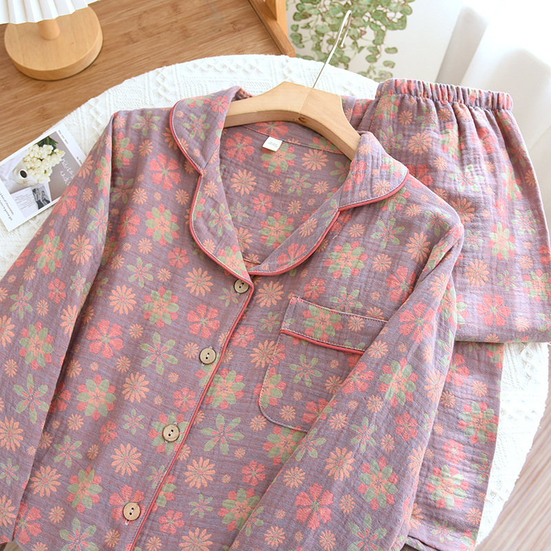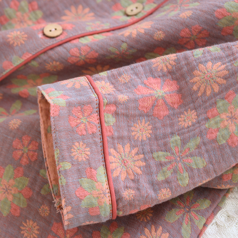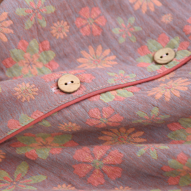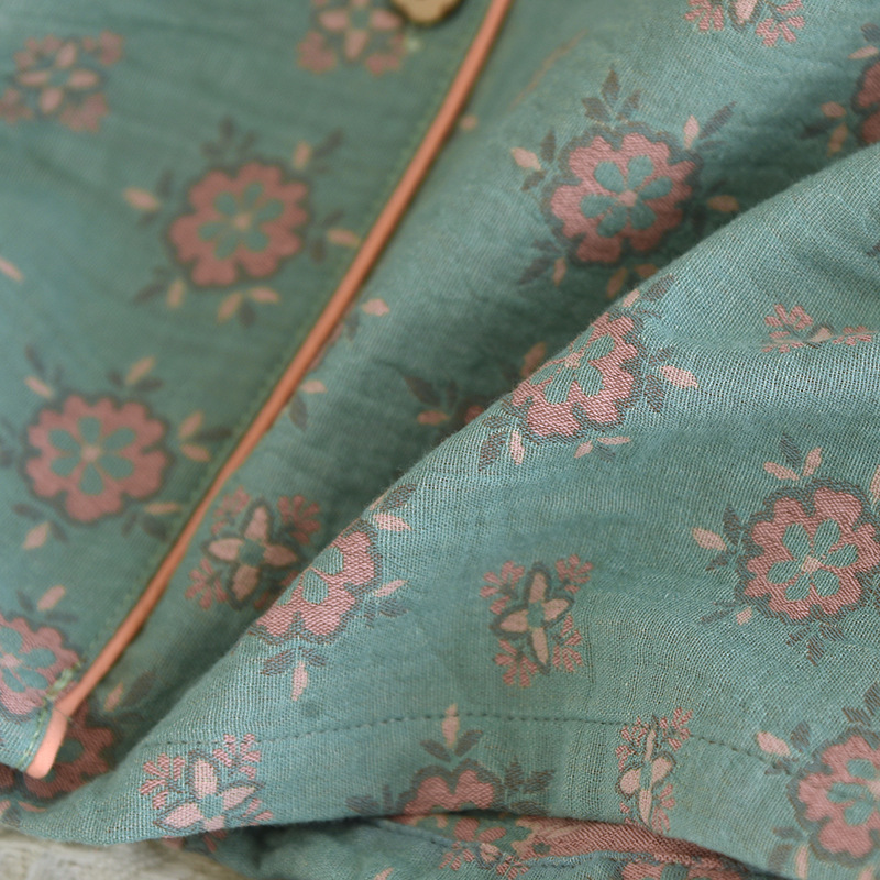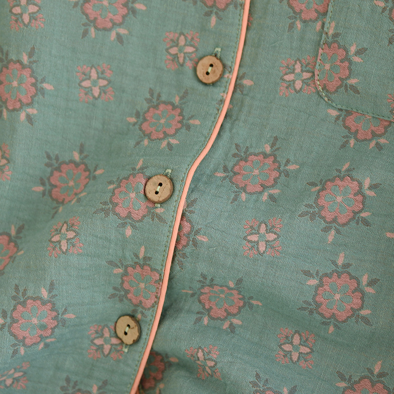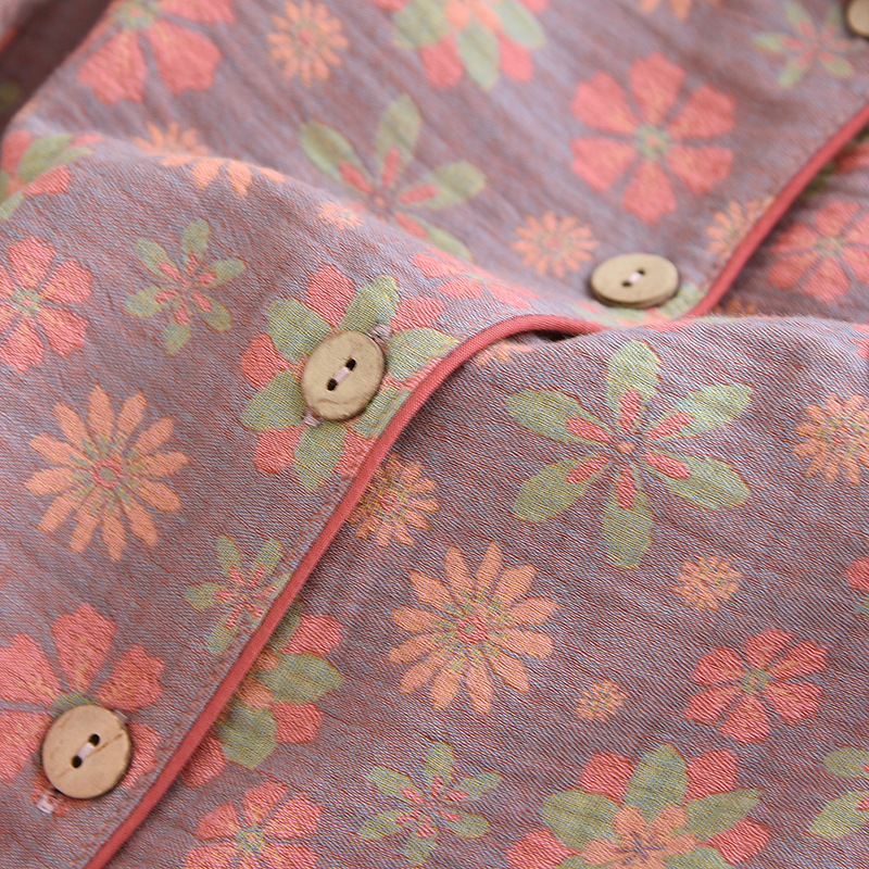 Color: yarn-dyed jacquard fresh world lapel women's long set 008, yarn-dyed jacquard pink bowknot pattern lapel women's long set 008, yarn-dyed jacquard green bowknot pattern lapel women's long set 008