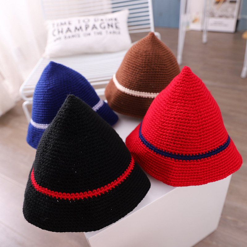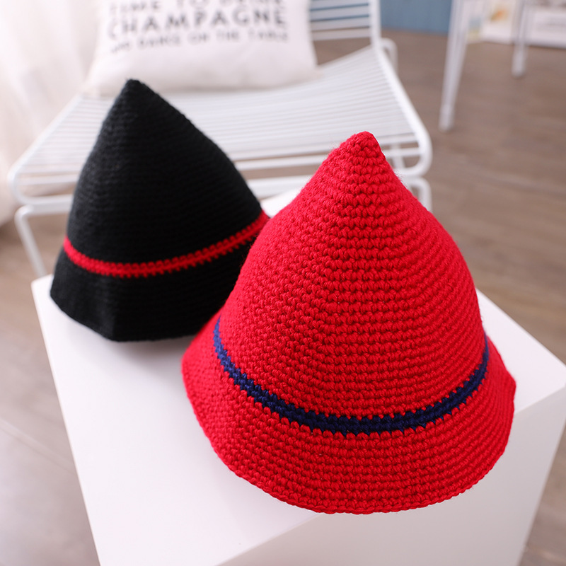 Material: AcrylicKnitting method: hand hookProcessing method: hand-paintedTop style: coneHat style: no eavesColor: red, black, navy blue, brownsize: one size