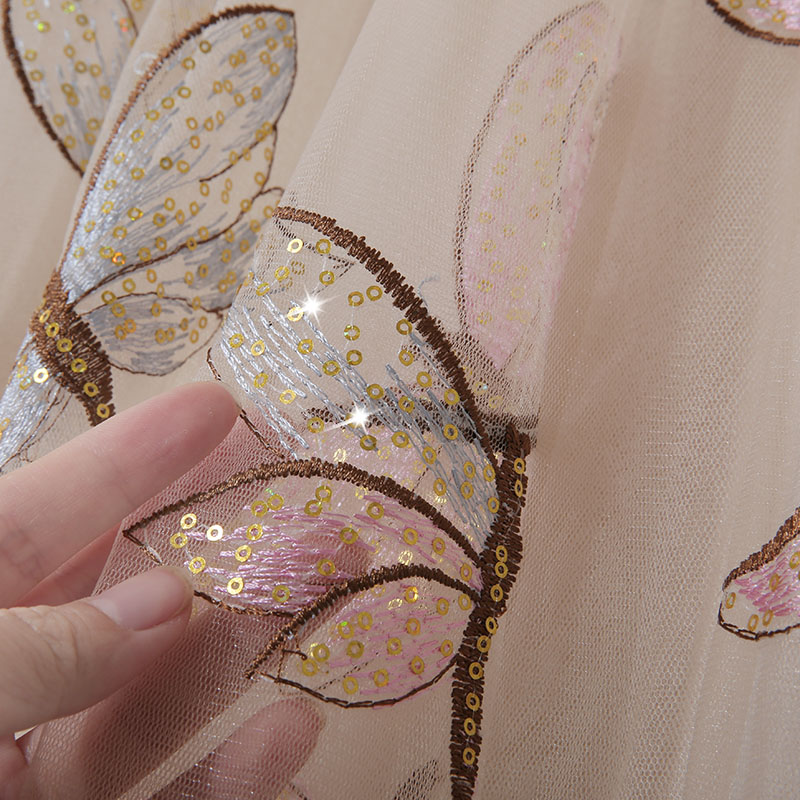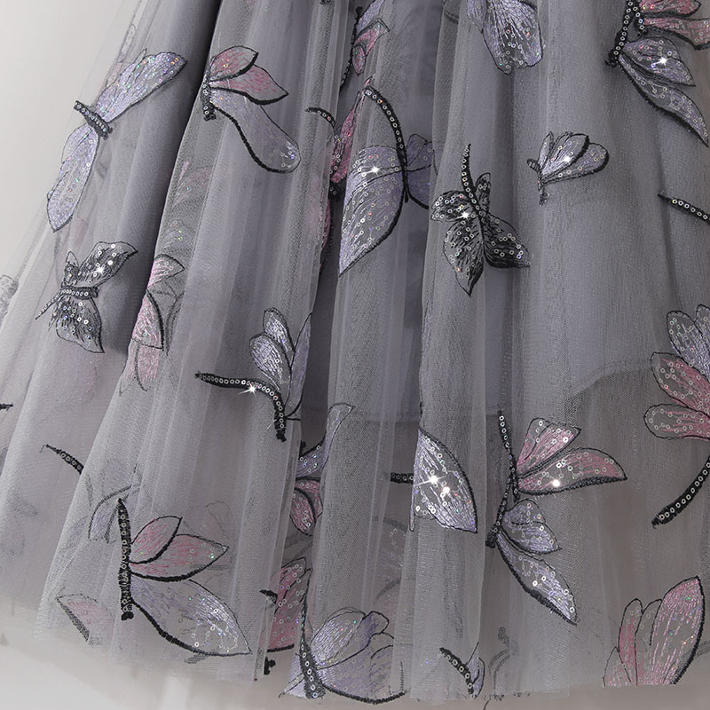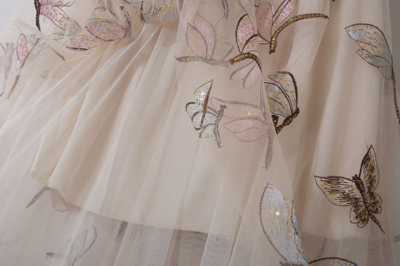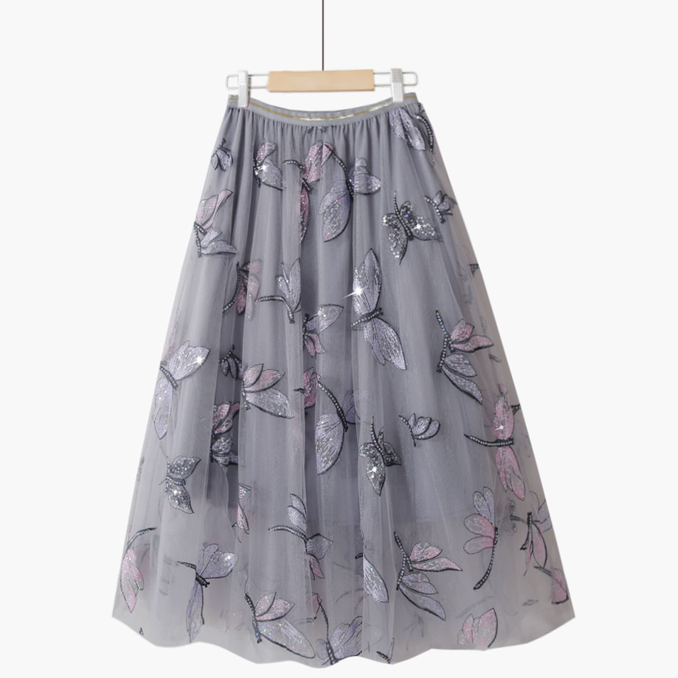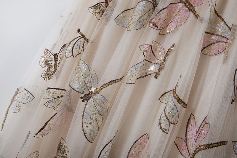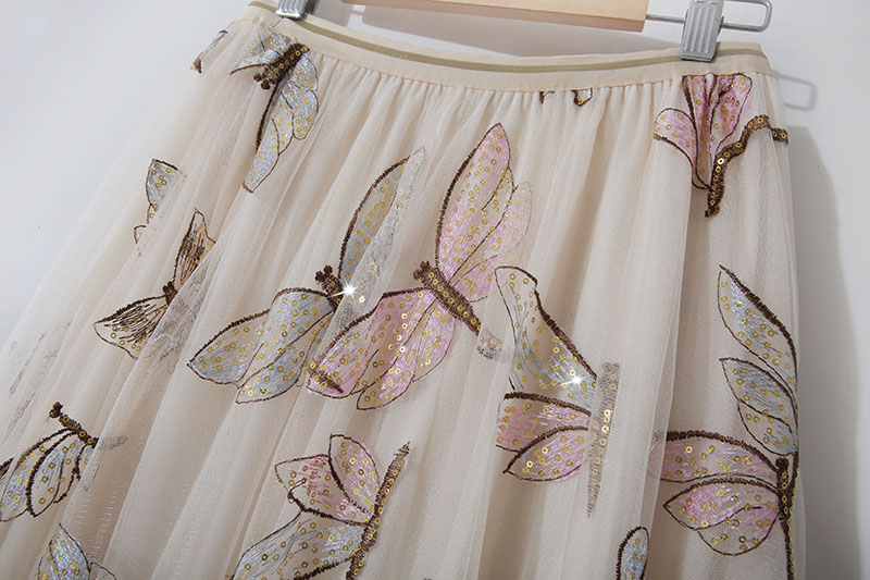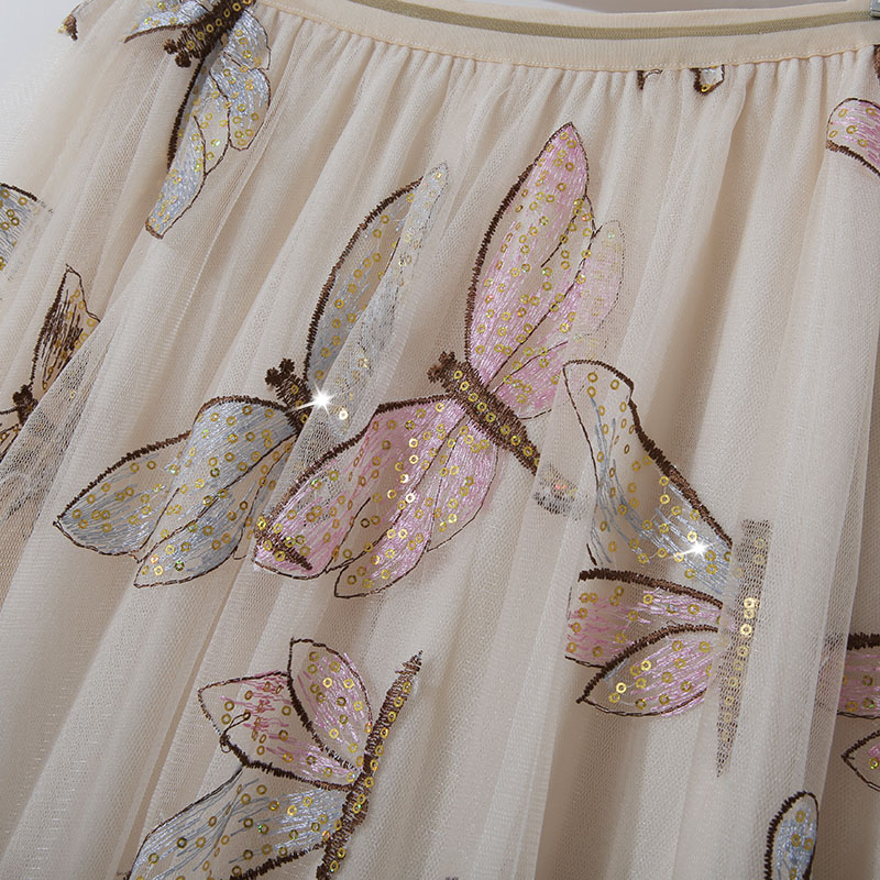 Colour:Apricot [Dragonfly Sequin Embroidered Yarn Skirt] Grey [Dragonfly Sequin Embroidered Yarn Skirt]
