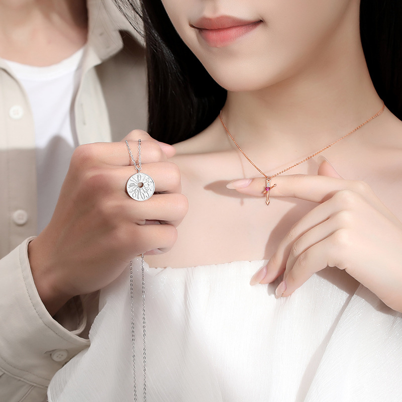 Product information:Material: silverTreatment process: electroplatingShapes: geometricColor: men's, women'sPopular elements: geometryMale: 18.4 * 18.4mmFemale: 9.2 * 18.3mmPacking list:Necklace X1PCS/Necklace X1Pair