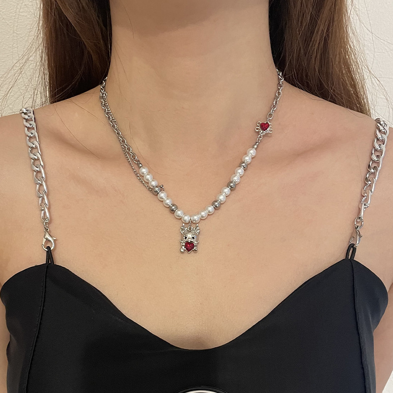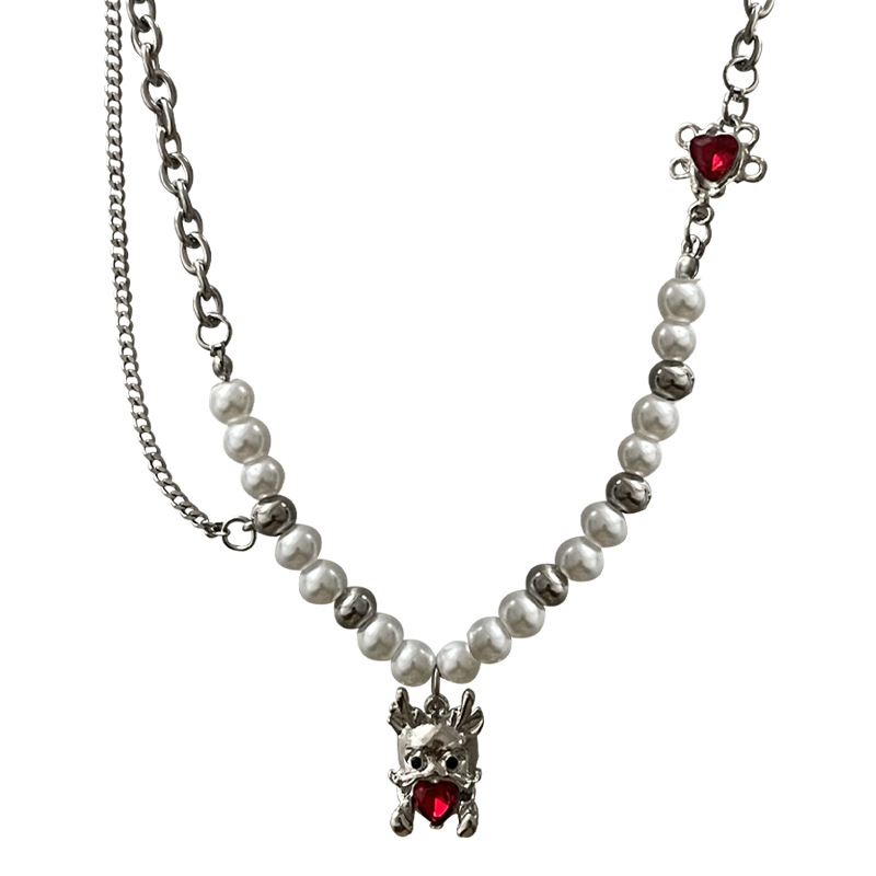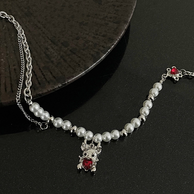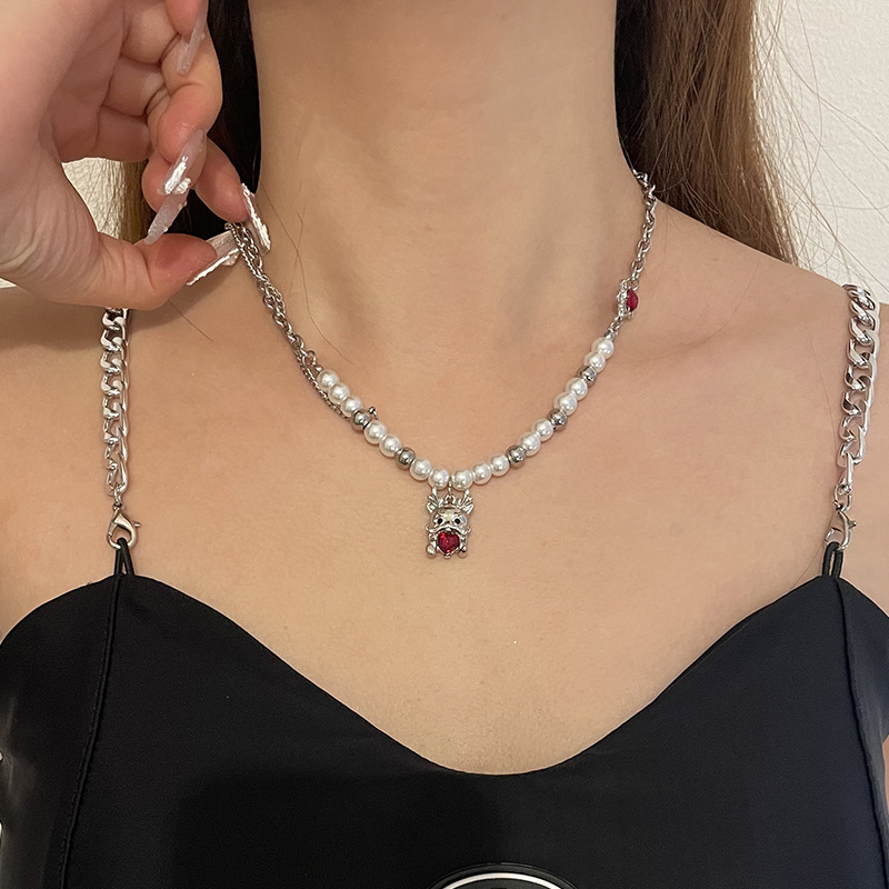 Product information:Color: Zodiac dragon pearl necklaceApplicable people: womenPendant material: AlloyChain style: cross chainMaterial: titanium steelStyle:-1, animal/ZodiacPopular elements: DragonStyle: Hip hop