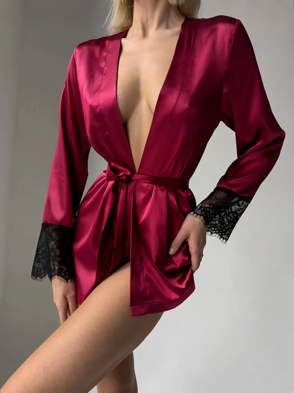 Product information:Fabric name: SatinColor: wine red, purpleMain fabric composition: Polyester FiberSize: M,LApplicable Gender: FemaleStyle: see-through dress