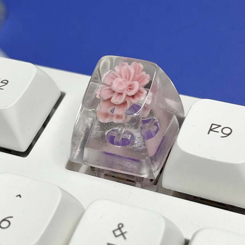 Product Details:Model: Key capKey cap material: resinColor classification: Pink flowers, white flowers, blue stamens, pink flower charactersProcess: Two color injection moldingTransparent or not: YesProduct Packaging:Key cap * 1
