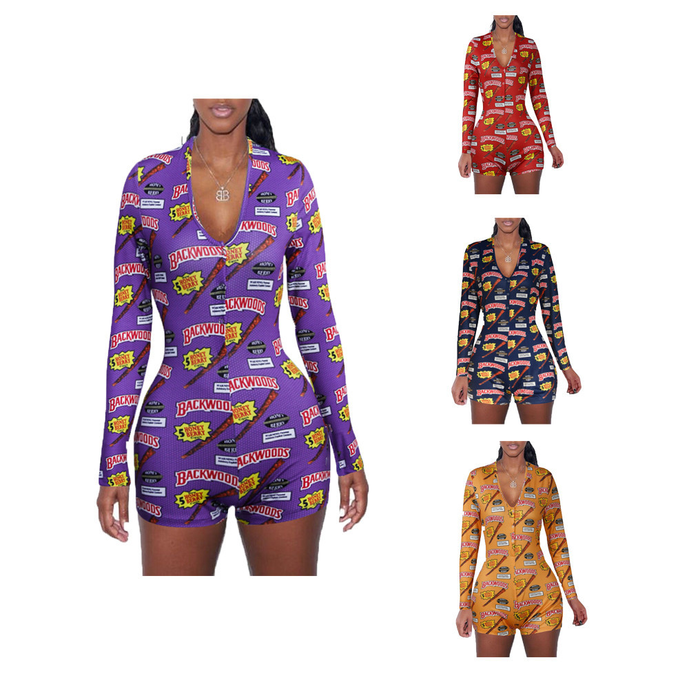 Women's printed long sleeve jumpsuit