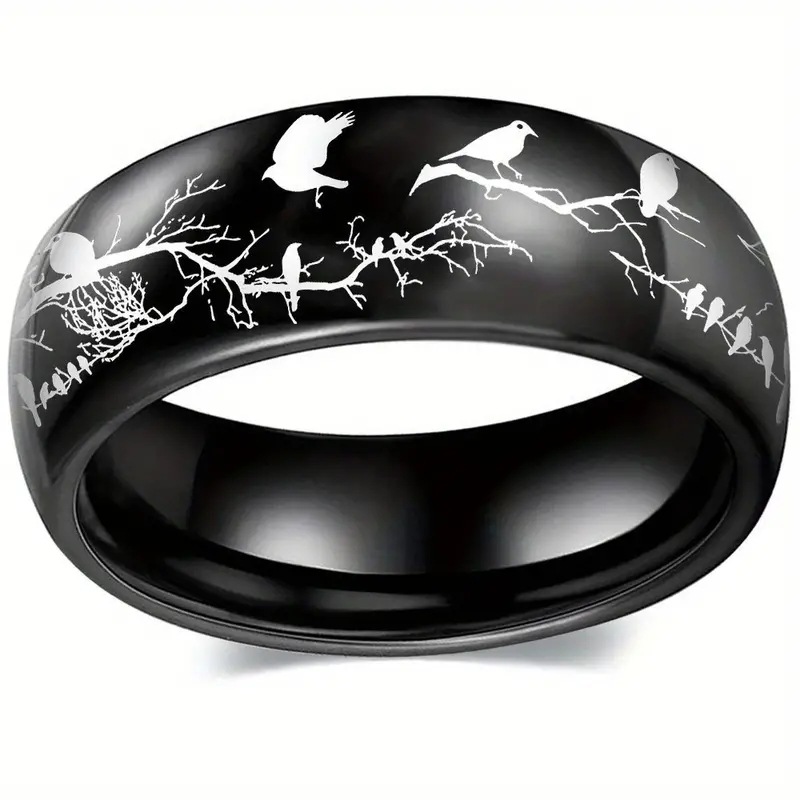 Product information:Type: Ring Color: 8MM black arc bird, 8MM steel arc bird Size: no.6, no.7, no.8, no.9, no.10, no.11, no.12, no.13 Applicable gender: Couple Material: Stainless steel Shape: Star