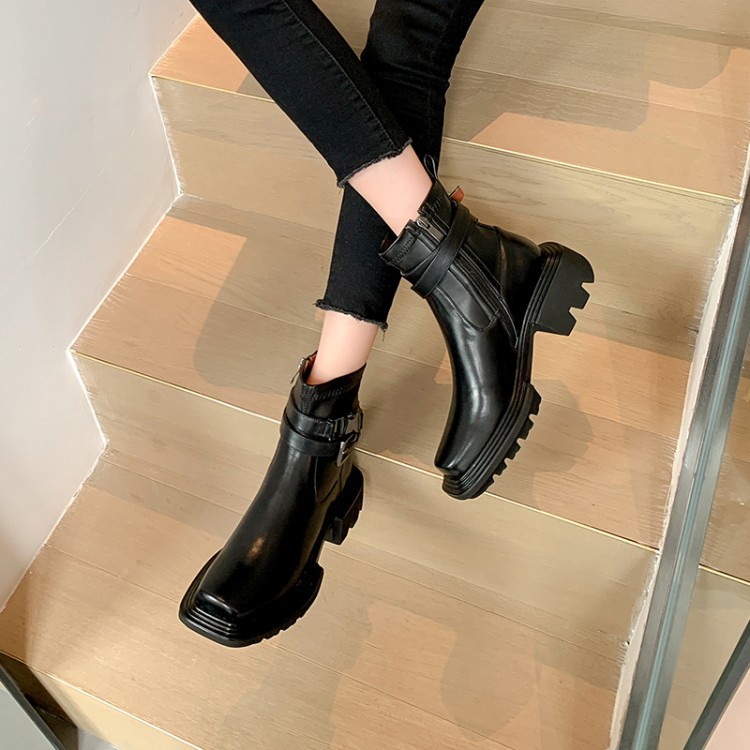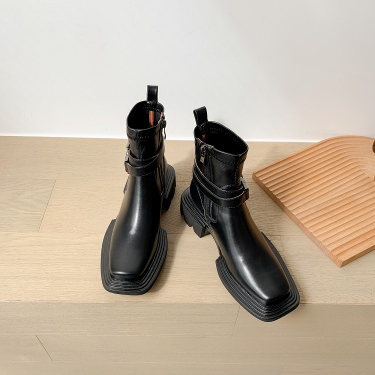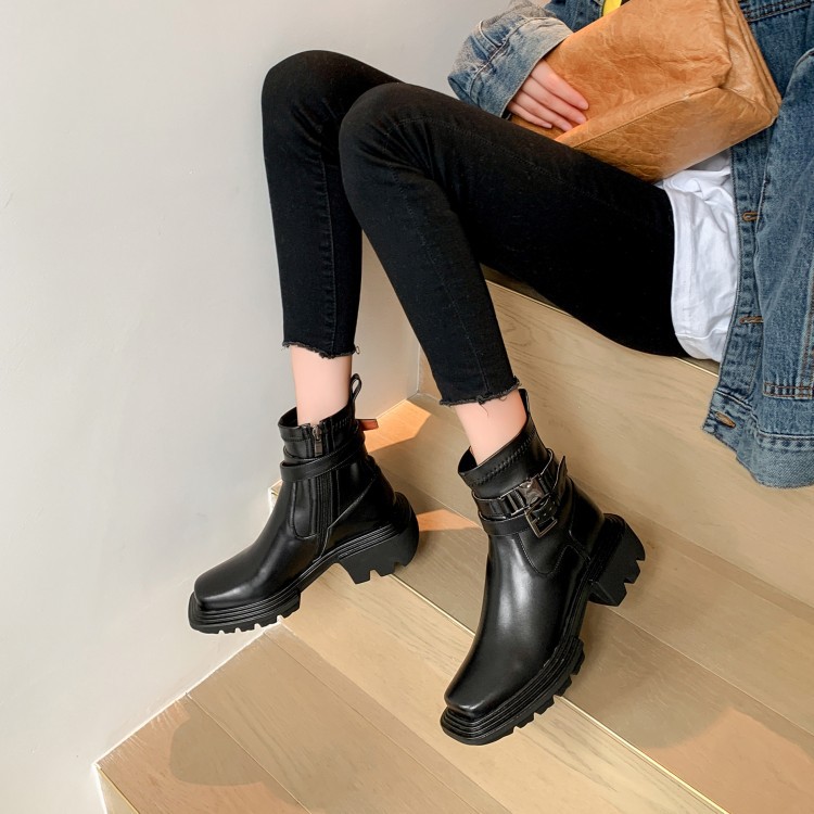 Popular elements: thick heel, belt buckle