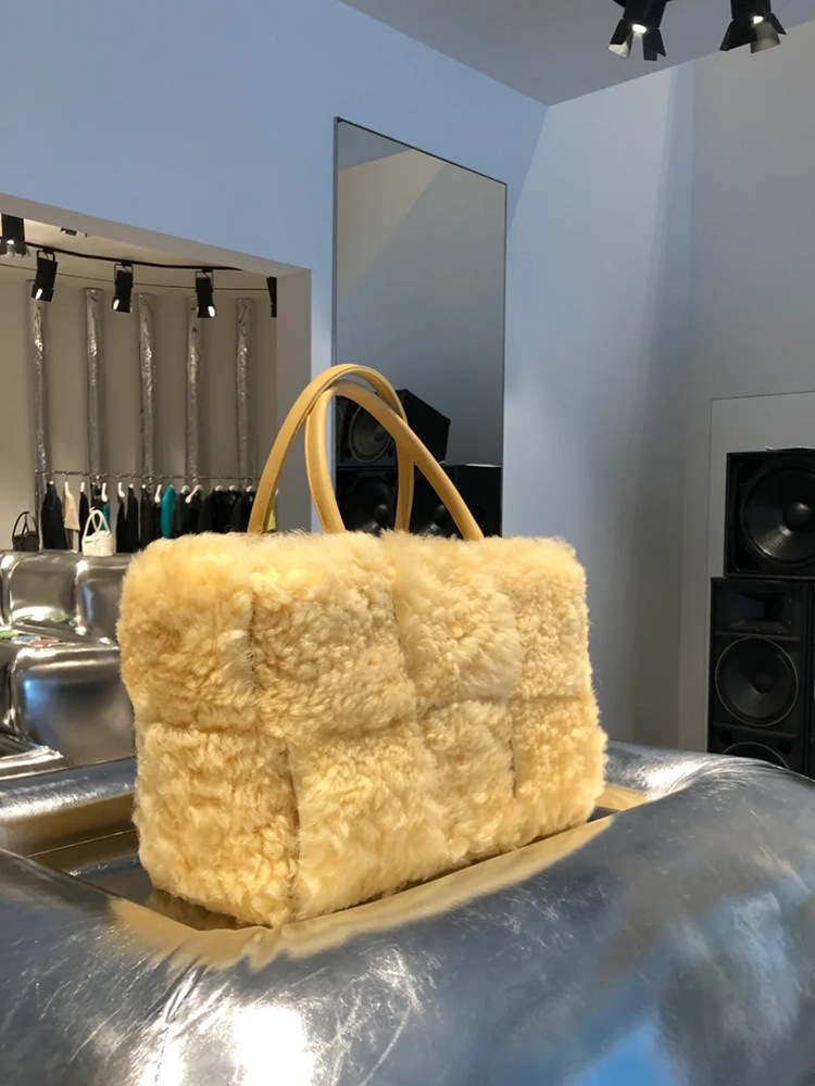 Color: green, light yellow, brownStyle: street fashionMaterial: plushPopular elements: weavingLining texture: polyesterSize: Thickness 14CM, width 40CM, height 23CM