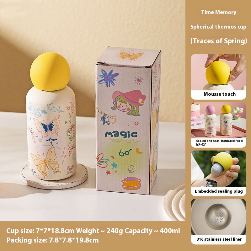 Color classification: Dream set portable thermos cup 350ml-little black cat [send Cup brush], time memory thermos cup 400ml-trace of spring
